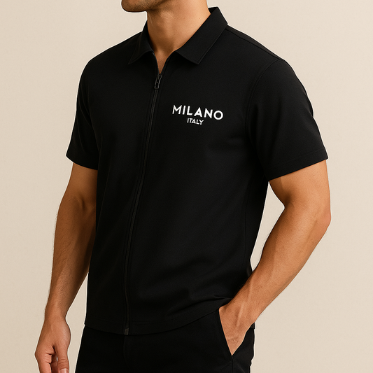 Men’s Luxe Zipper-Collar Shirt – Milan Print