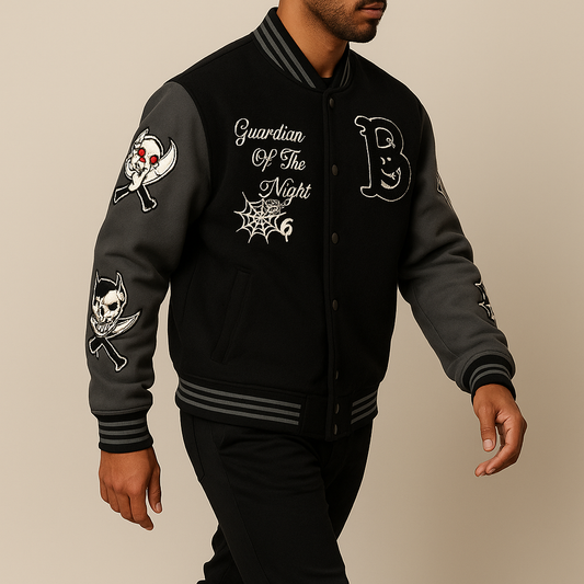 Luxury Letter-&-Bat Skull Varsity Jacket